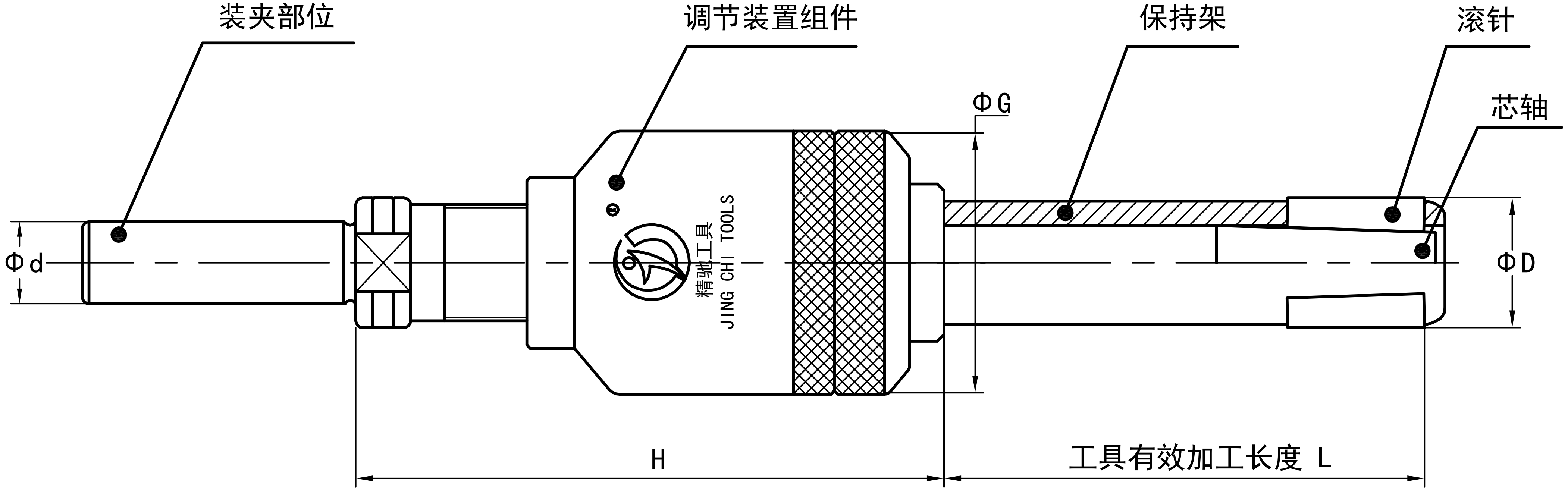 注:孔徑Φ26-68的滾壓刀有效加工長度從B檔開始柄部標配MT3,如需其他型號規(guī)格需定做。加工孔徑Φ40以上的滾壓刀,由于調(diào)節(jié)組件的外徑比加工孔徑小,可通過加長柄部尺寸的方法增加加工長度。