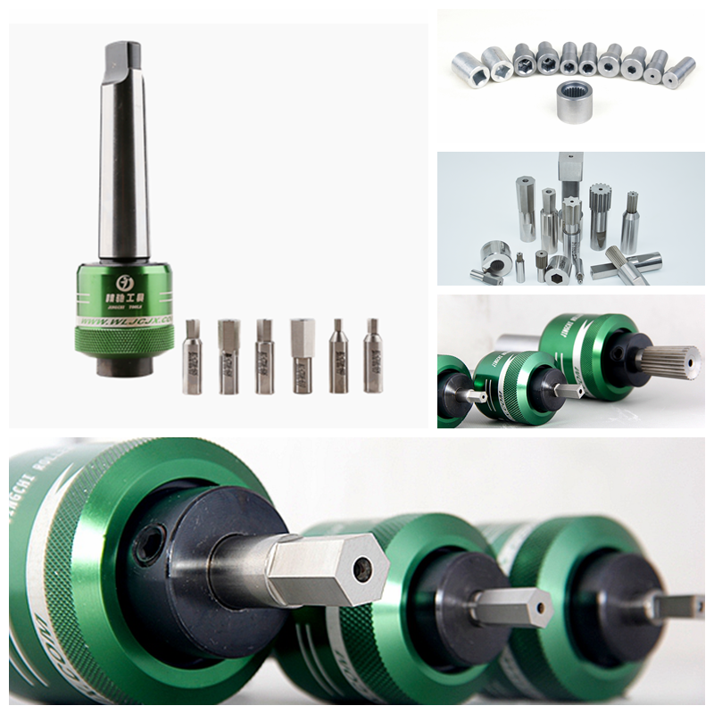 旋轉(zhuǎn)沖削工具是通過刀具的旋轉(zhuǎn)轉(zhuǎn)化為切削的力而進(jìn)行工作。本公司研制的旋轉(zhuǎn)沖削刀具,是一個(gè)操作簡(jiǎn)單的異形孔加工刀具,本工具適用一般車床、CNC自動(dòng)車床、加工中心、鉆床等設(shè)備,可加工盲孔,通孔有規(guī)則或不規(guī)則的多邊形,除了加工標(biāo)準(zhǔn)的六角、正方孔,也可定制星形、花鍵等其它特殊形狀。